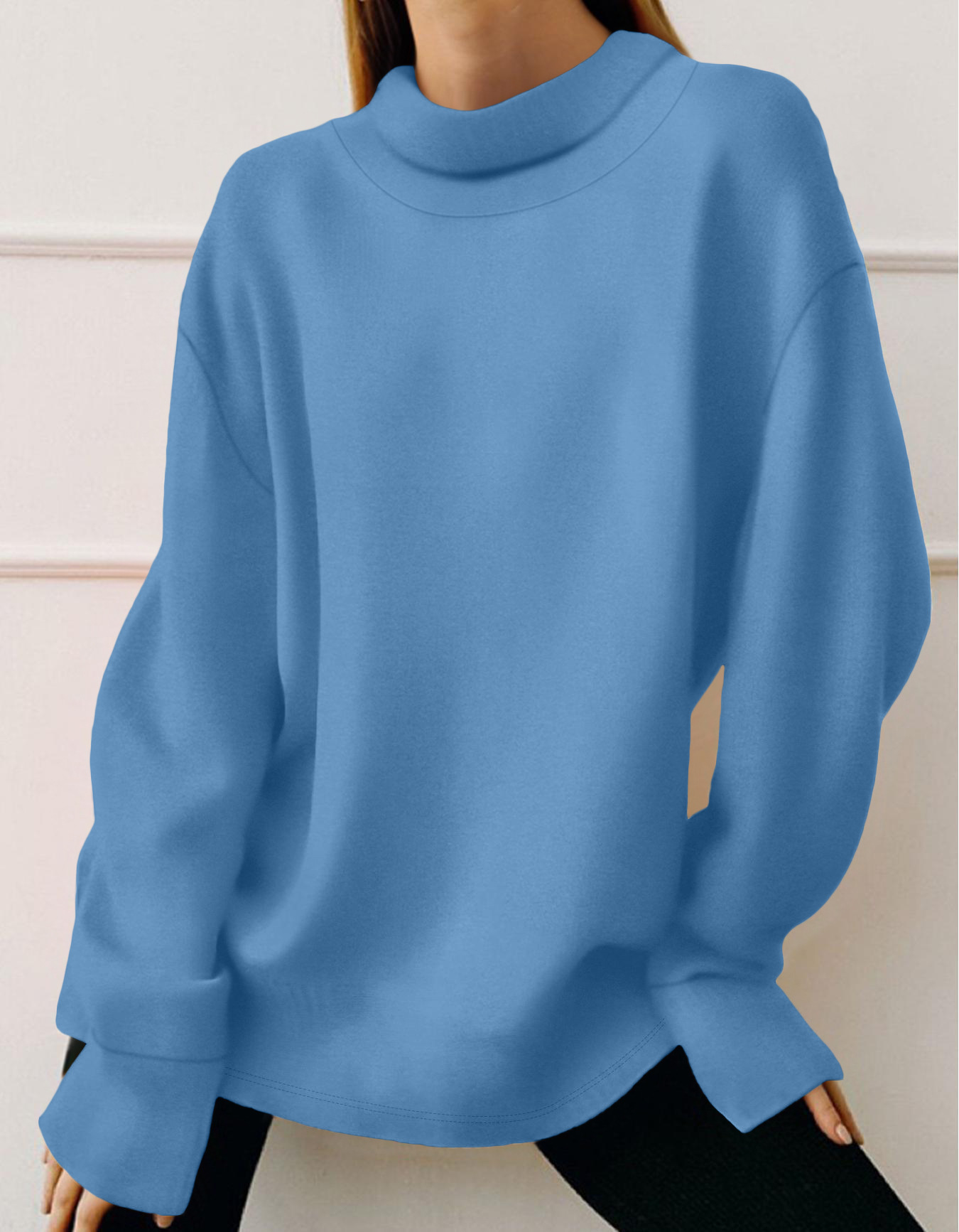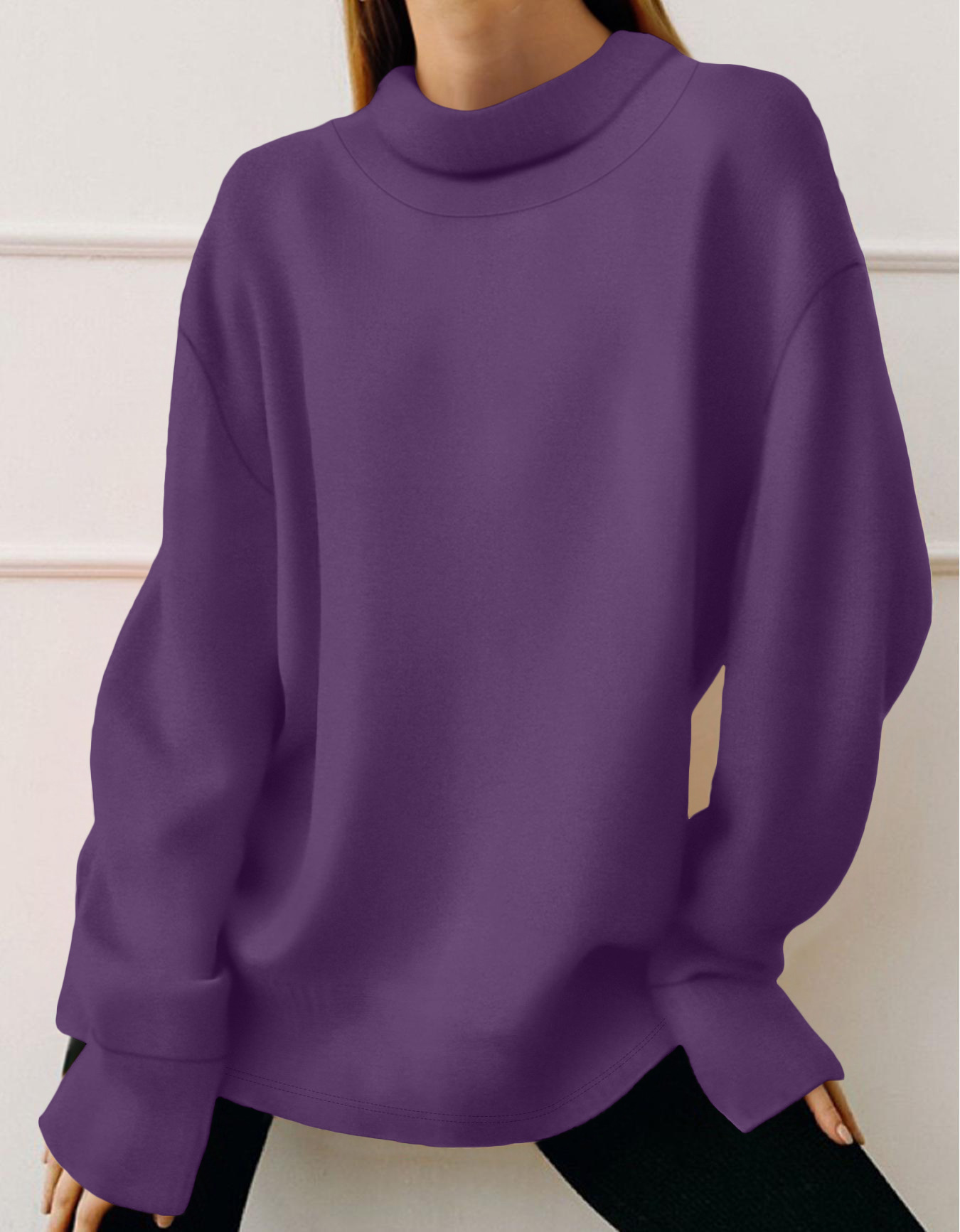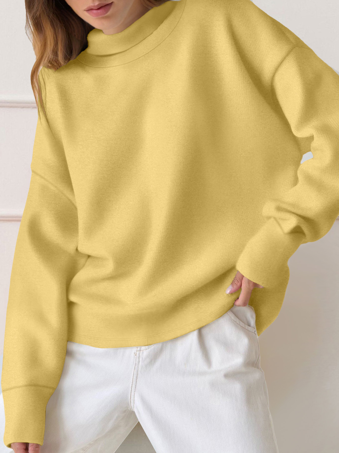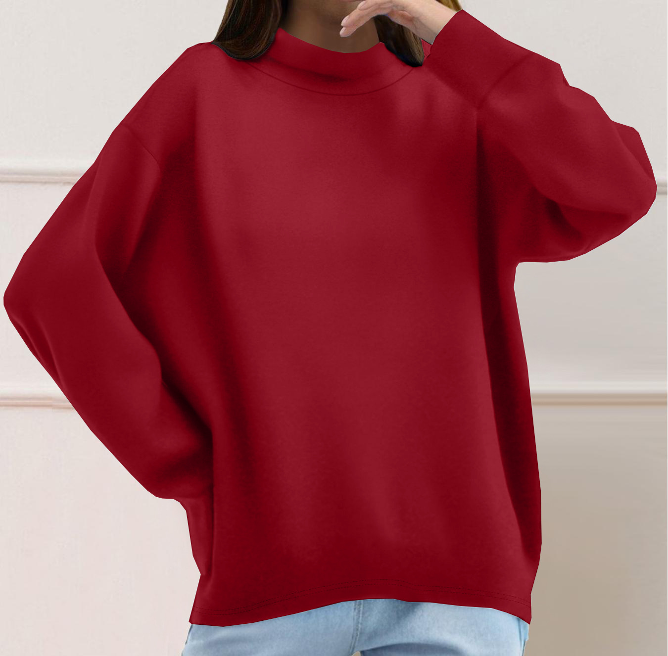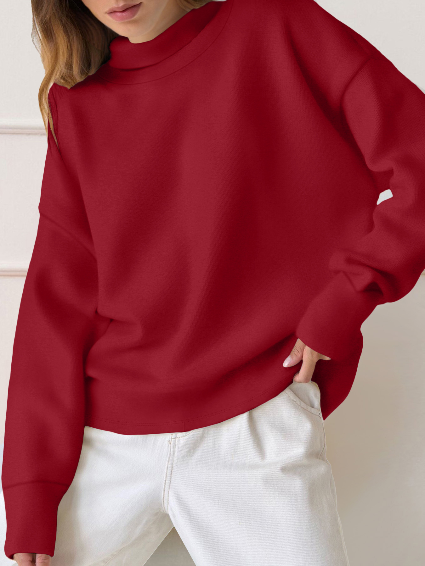Sudadera de manga larga de color sólido simple y versátil de moda