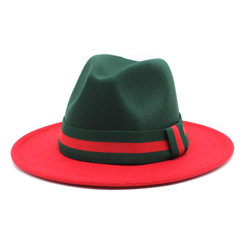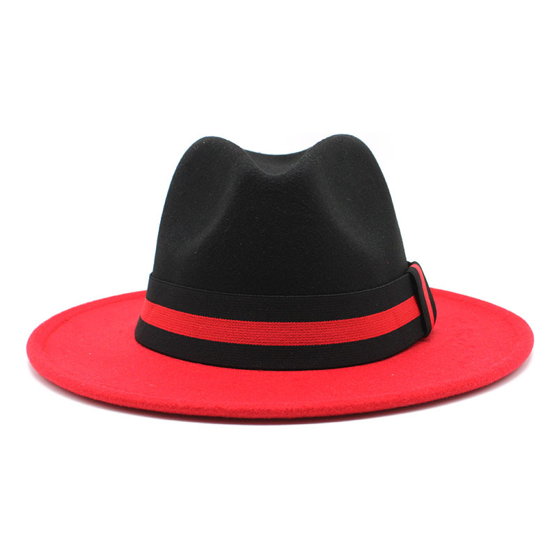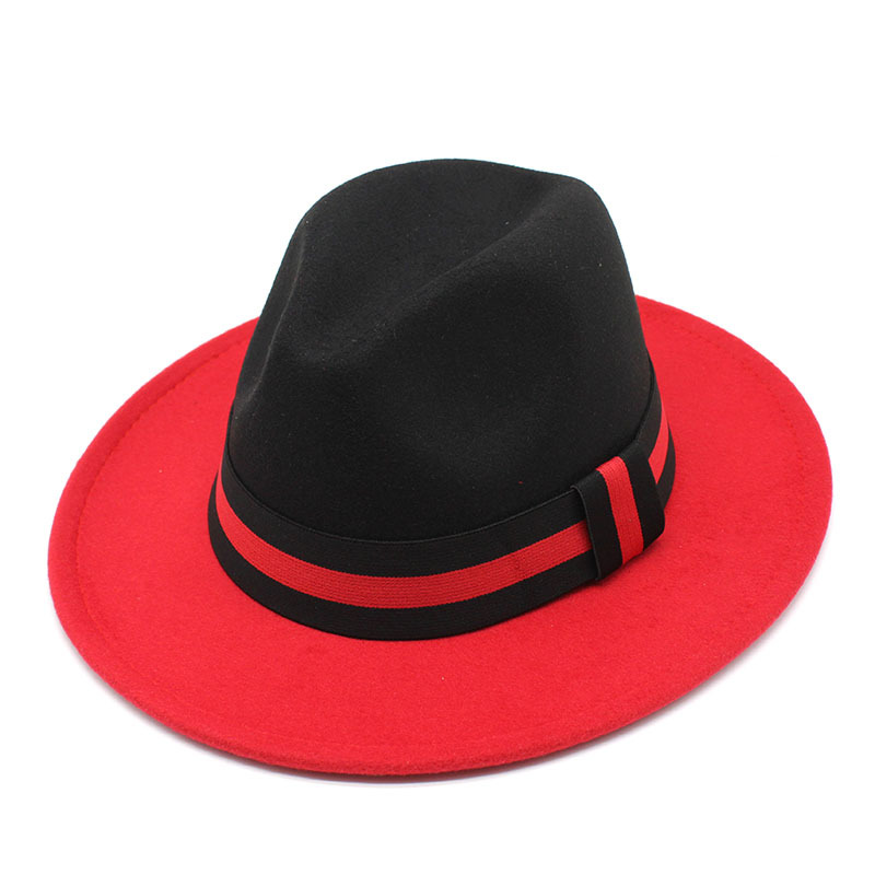Sombrero de copa de lana con patchwork de dos tonos a la moda