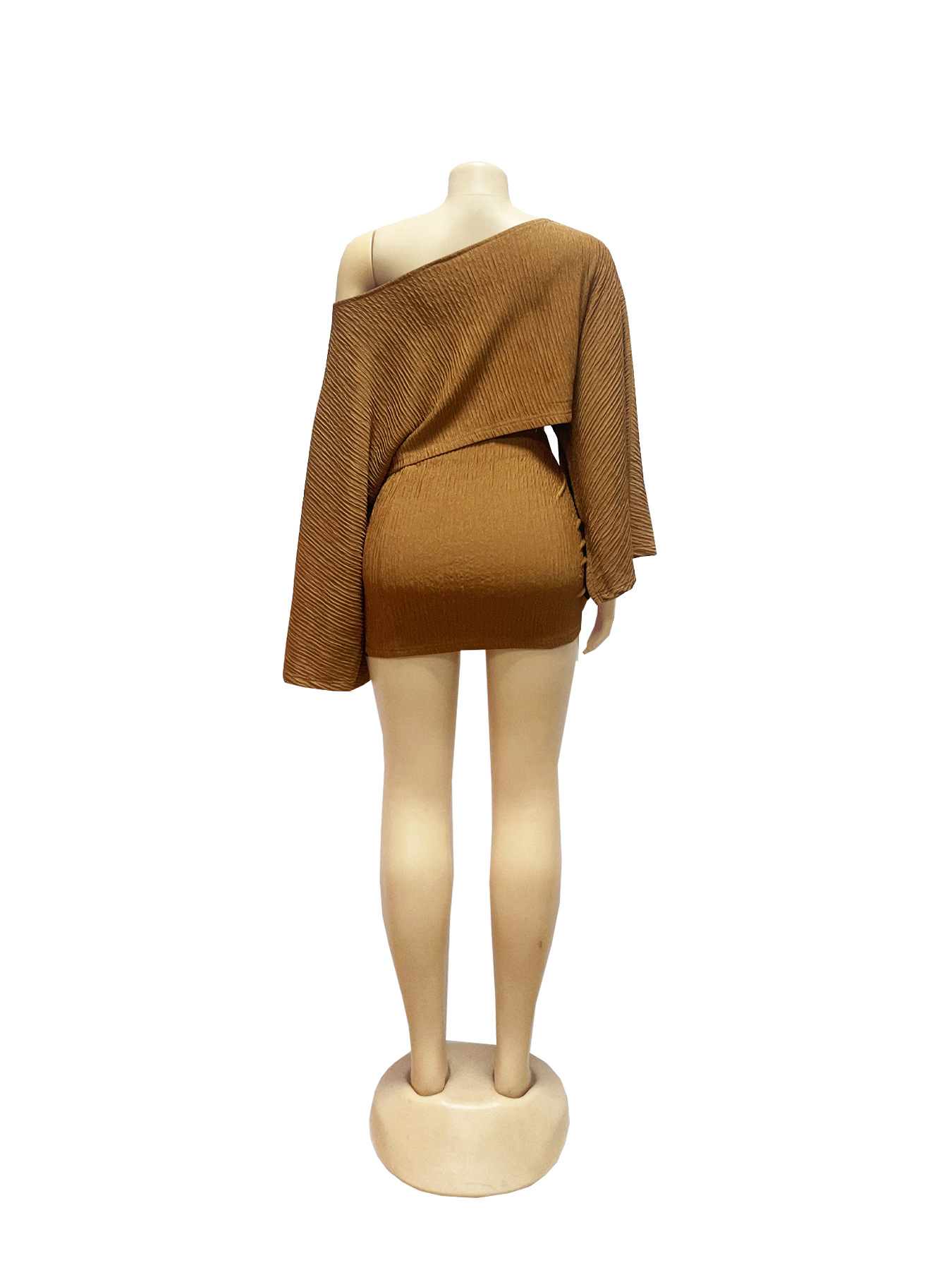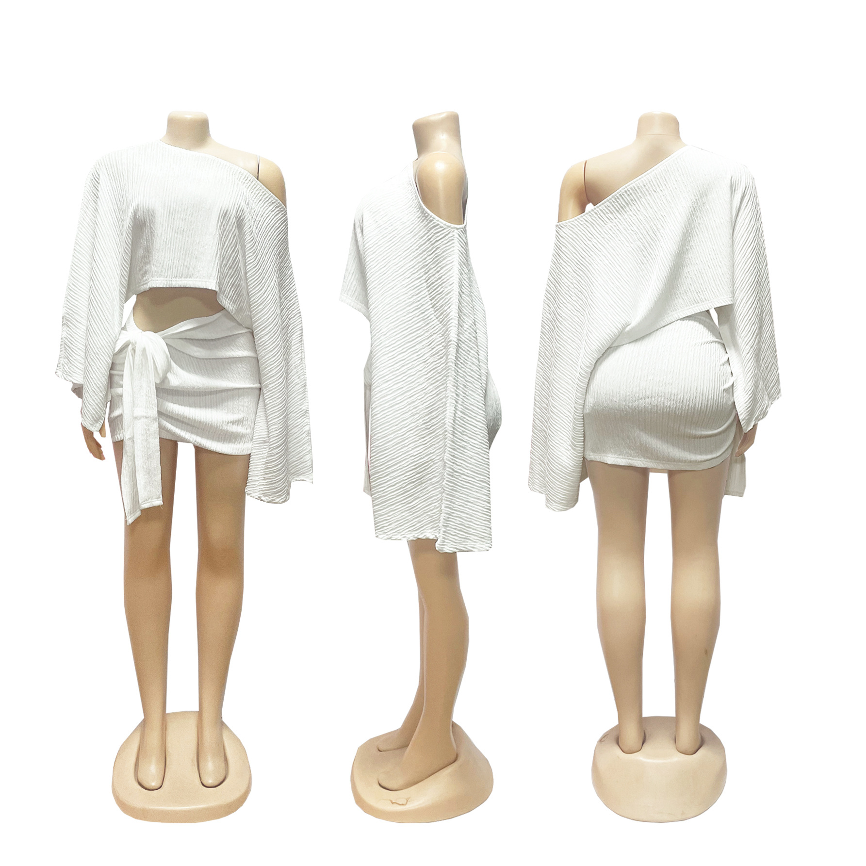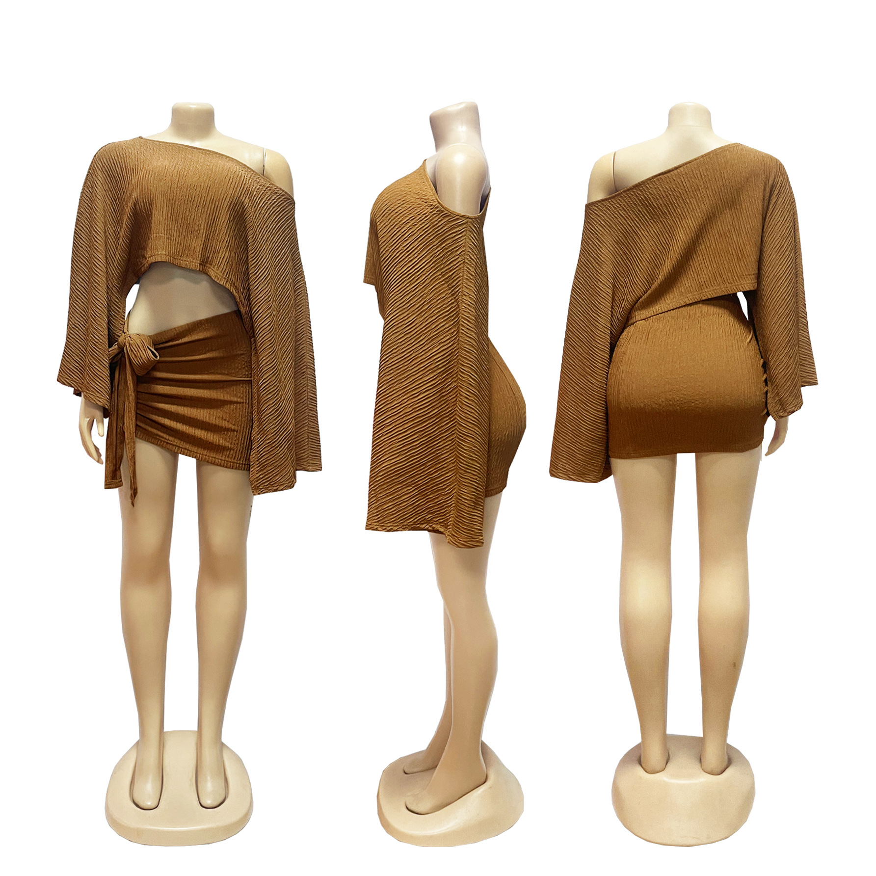 Conjunto de top con hombros descubiertos y falda ajustada con lazo en la parte delantera