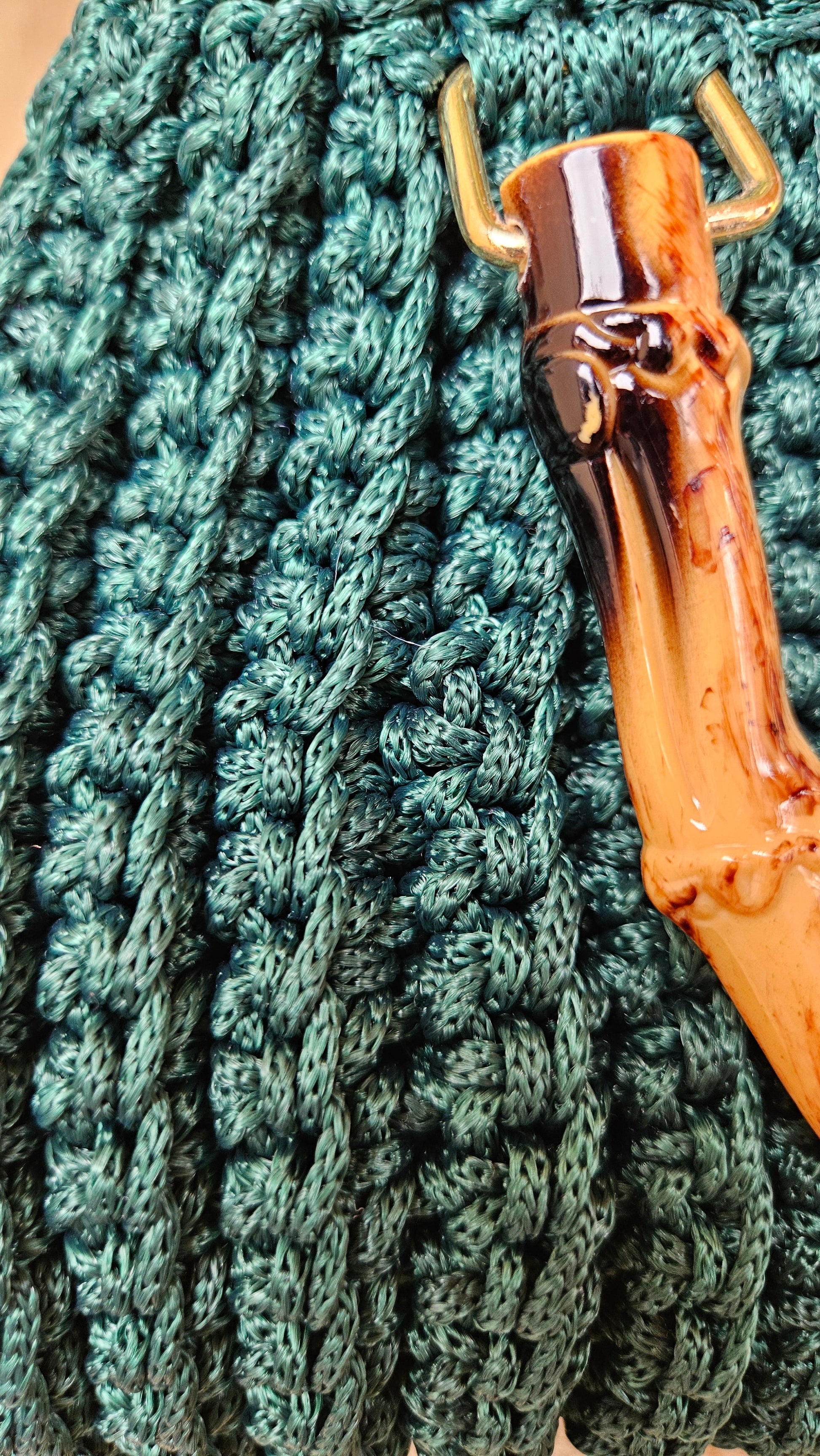 Afegeix un toc d'artesania i exclusivitat al teu estil amb aquest bolso de crochet fet a mà.