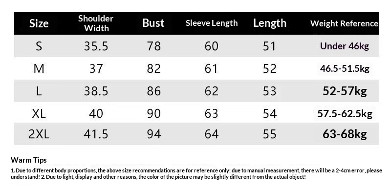 Note: 1. Asian sizes are 1 to 2 sizes smaller than European and American people. Choose the larger size if your size between two sizes. Please allow 2-3cm differences due to manual measurement. 2. Please check the size chart carefully before you buy the item, if you don't know how to choose size, please contact our customer service. 3.As you know, the different computers display colors differently, the color of the actual item may vary slightly from the following images.