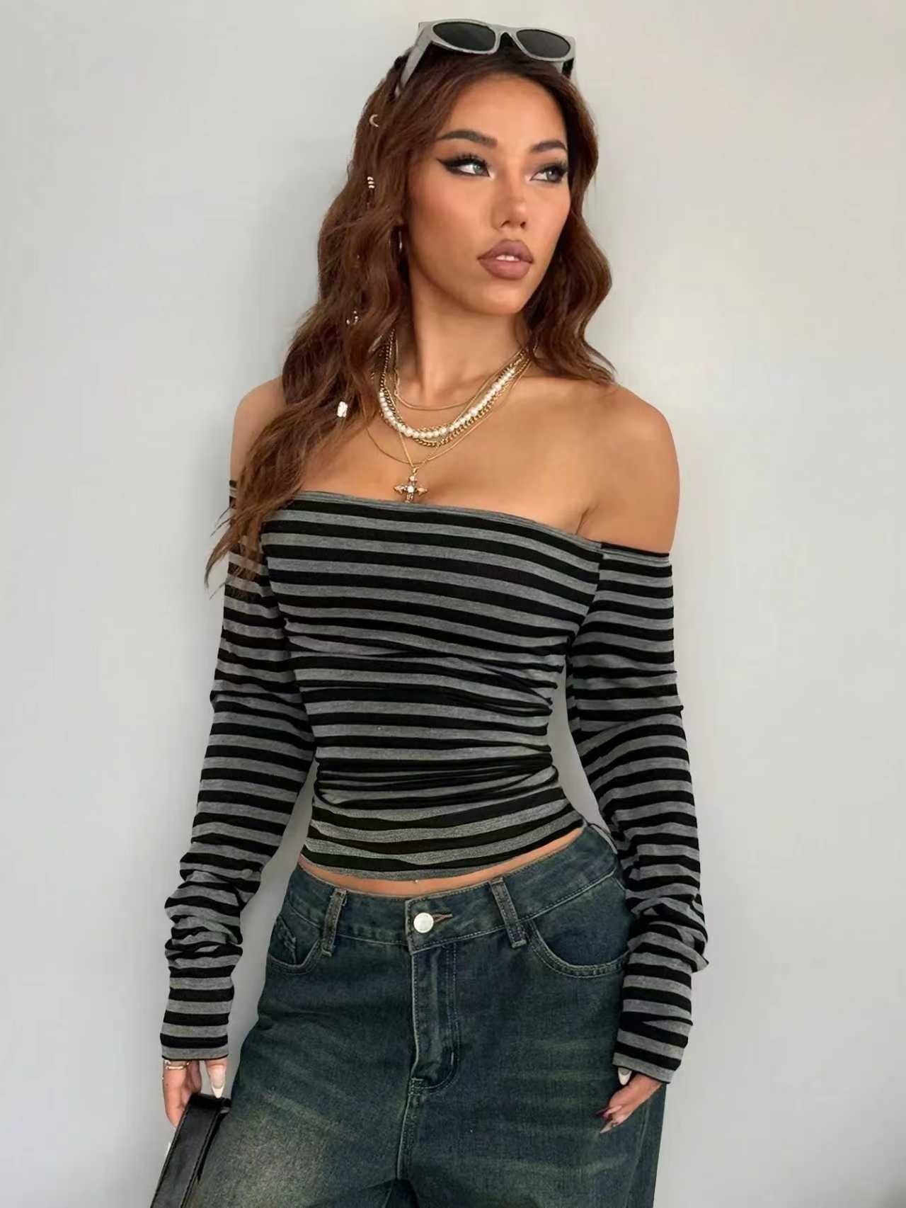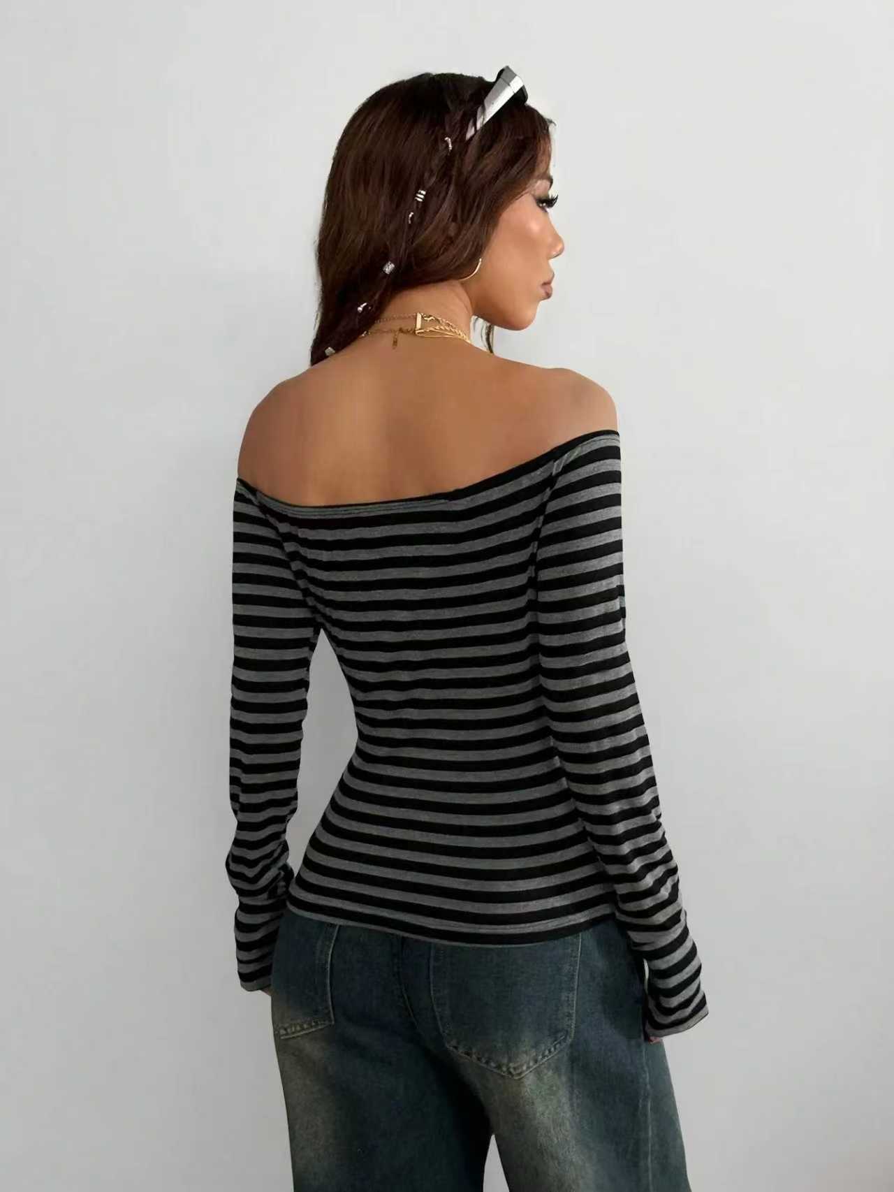 Top informal con hombros descubiertos y estampado de rayas para mujer