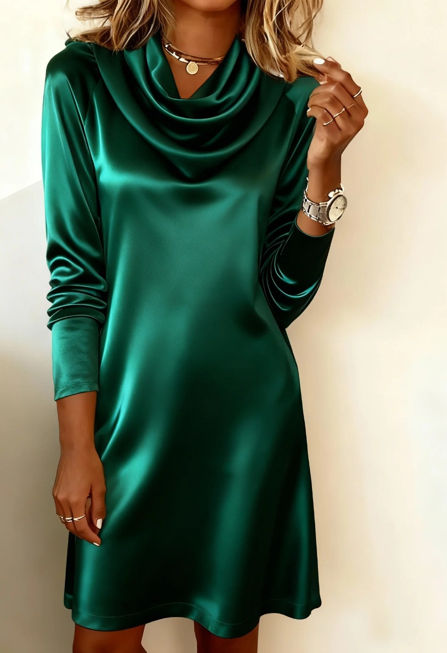 Vestido elegante midi de manga larga con cuello barco para mujer, color liso