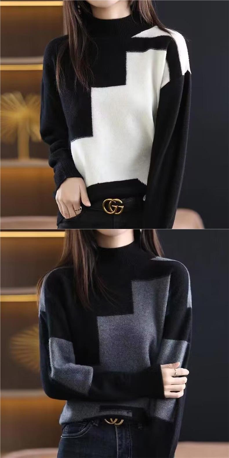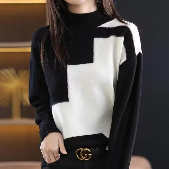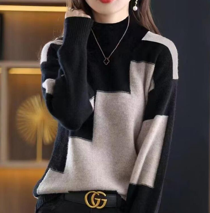 Suéter de terciopelo para mujer, nuevo jersey de punto de cuello medio para otoño e invierno.